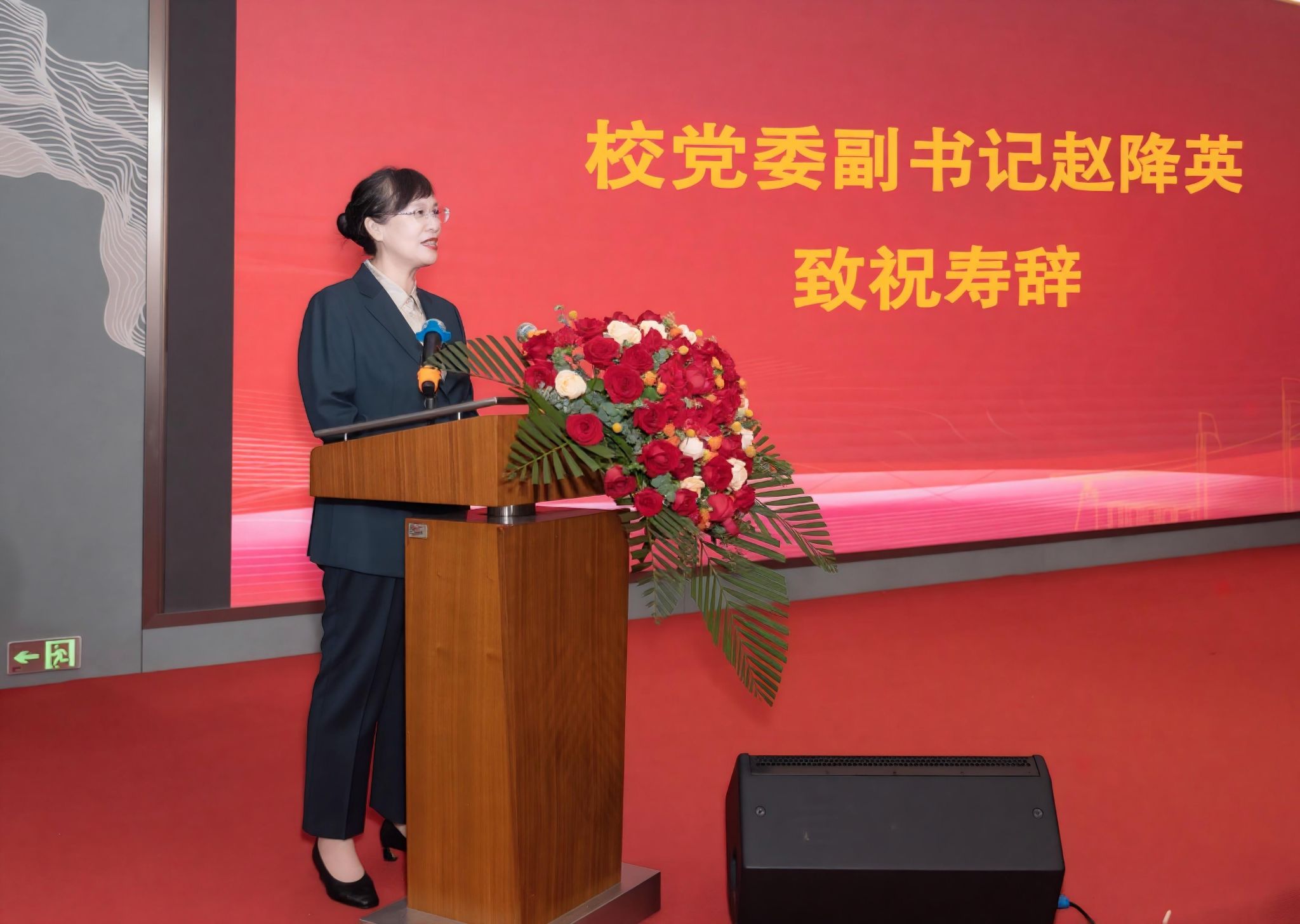 赵降英副书记致祝寿词。她代表学校向全体“逢十”寿星致以诚挚问候与美好祝福。她深情回顾老同志们为建校兴学倾注的心血与汗水,感念他们扎根三尺讲台传道授业、投身科研一线攻坚克难、坚守管理岗位夯基垒台,把人生中最宝贵的岁月奉献给了教育事业。赵副书记特别通报了学校近年在学科建设、师资力量、科研实力、综合保障能力、国际排名等方面取得的丰硕成果。她强调,这些成绩离不开老同志们打下的坚实根基和始终如一的关心支持。虽已退休,很多老同志仍积极通过多种形式,持续为学校注入“银龄力量”,是学校砥砺前行的坚强后盾。学校始终高度重视离退休工作,始终坚持用心用情、精准服务离退休教职工。展望未来,赵副书记恳请老同志继续发挥政治优势、经验优势和威望优势,一如既往关心支持学校事业发展,为学校建言献策、赋能助力。