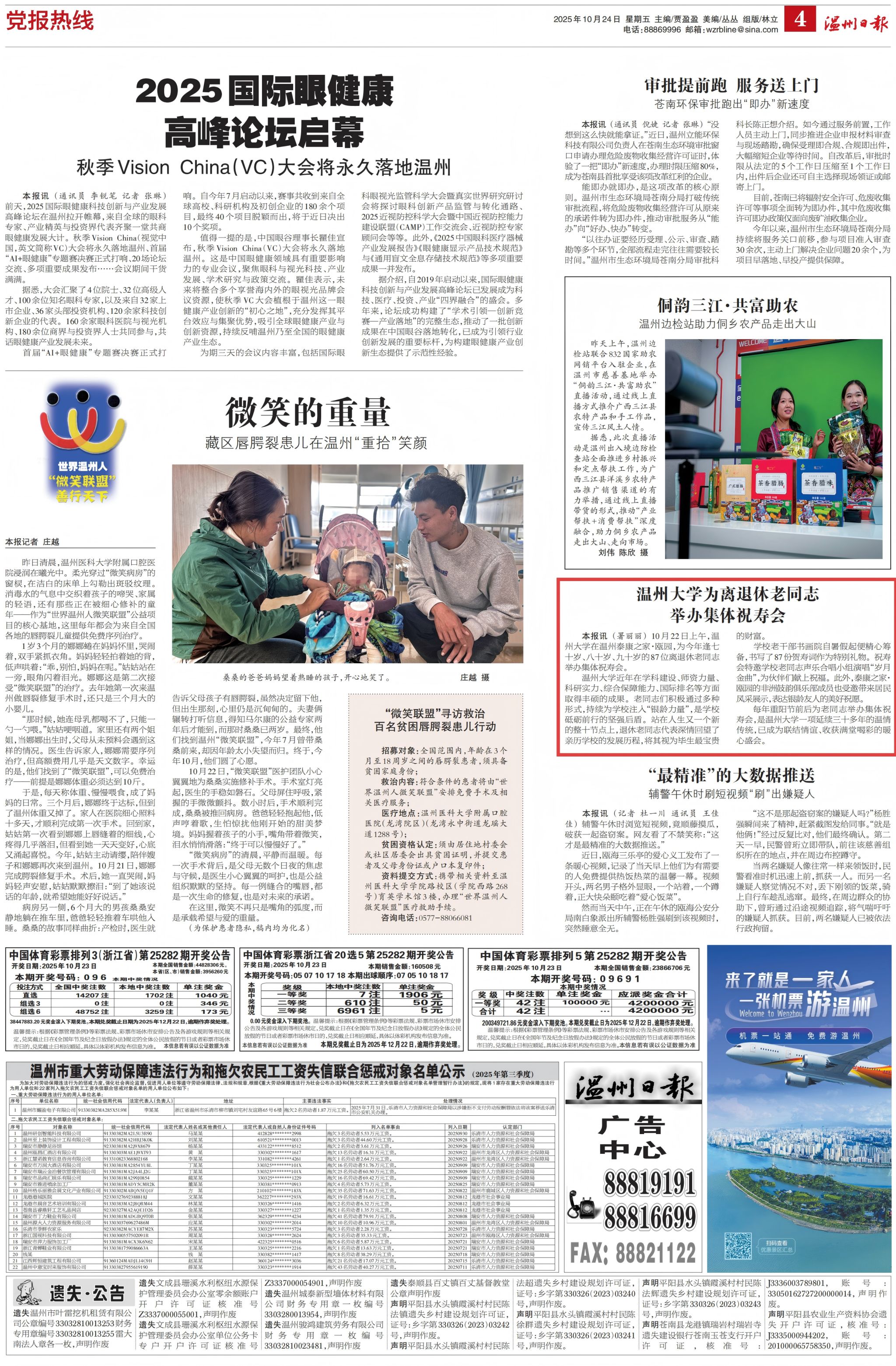我校为逢七十、八十、九十岁的老同志组织的集体祝寿会受到《温州日报》关注。10月24日,该报第四版报道了10月22日在温州泰康之家·瓯园举办的活动详情。此次活动邀请了87位老同志参加,是学校延续三十多年的传统做法,体现了学校对离退休教职工的关怀。报道全文如下:
