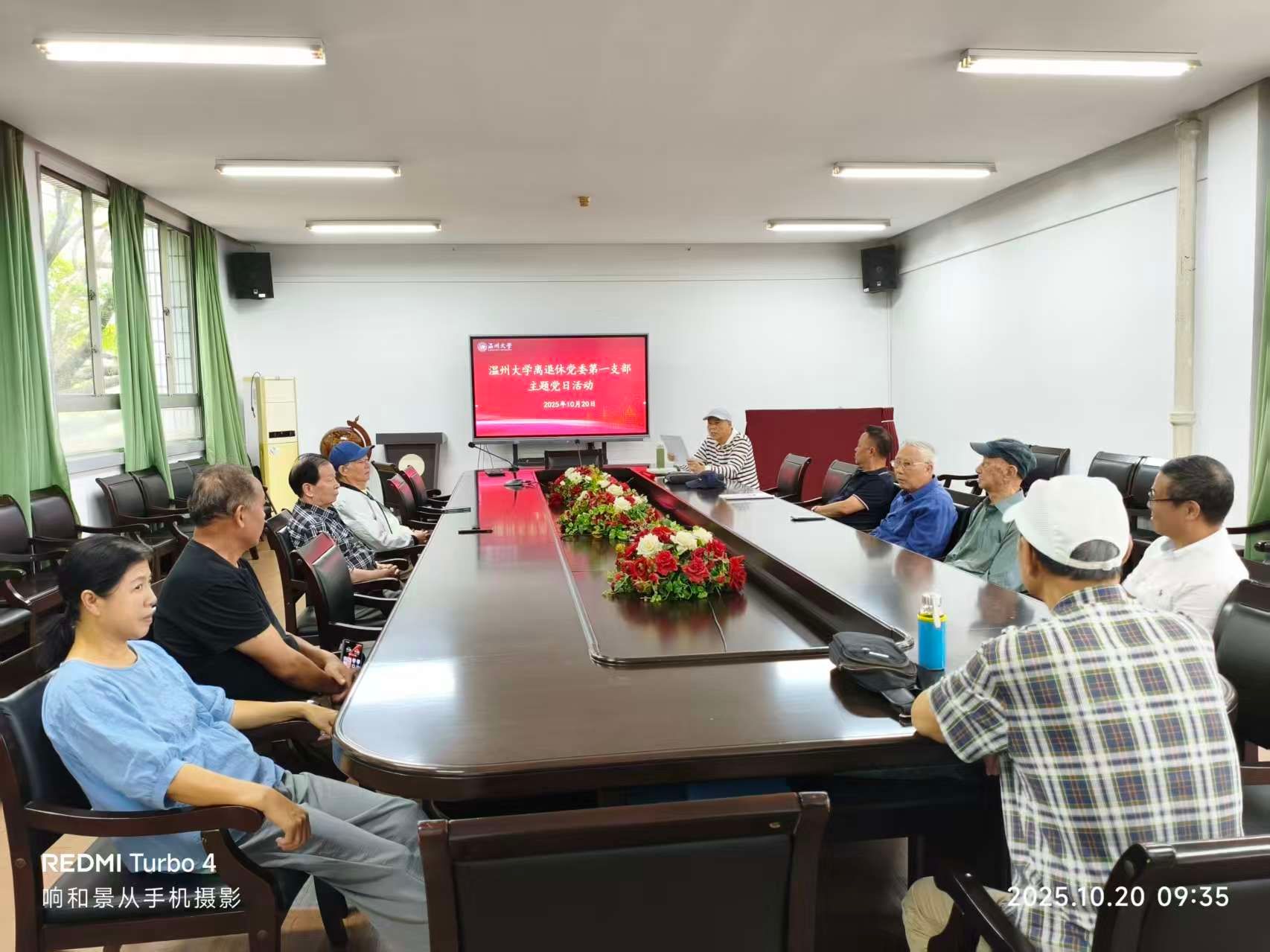 2025年10月20日上午,温州大学离退休第一党支部在学院路校区老干部活动中心召开学习会,专题学习《习近平淡治国理政》第五卷。