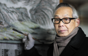 斯声老师看上去还不错,身子骨硬朗。他的书房兼画室不大,堆着许多书报画纸,老人大有再大干一场的气势,于是,我的脑海中跳出了“云轩主人老当益壮”几个字来。